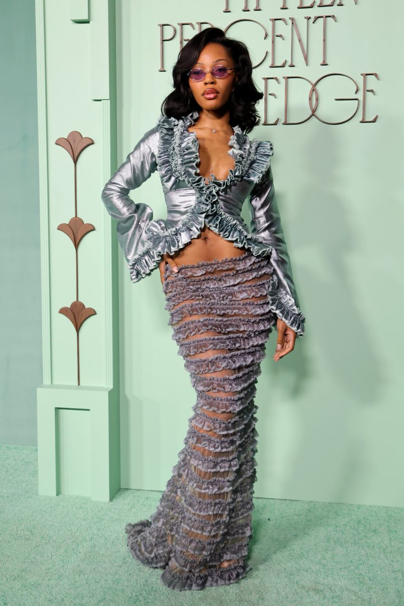 It is impossible to discuss the night without starting with the woman who started it all. Aurora James has a history of shutting down red carpets (her Met Gala looks are legendary), but for her own event, she brought a level of regal sophistication that set the tone for the evening. Opting for a custom gown that fused traditional craftsmanship with modern avant-garde sensibilities, James looked every bit the leader she is. The look wasn’t just a dress; it was a statement piece that underscored the gala’s theme—bold, unapologetic, and undeniably influential.