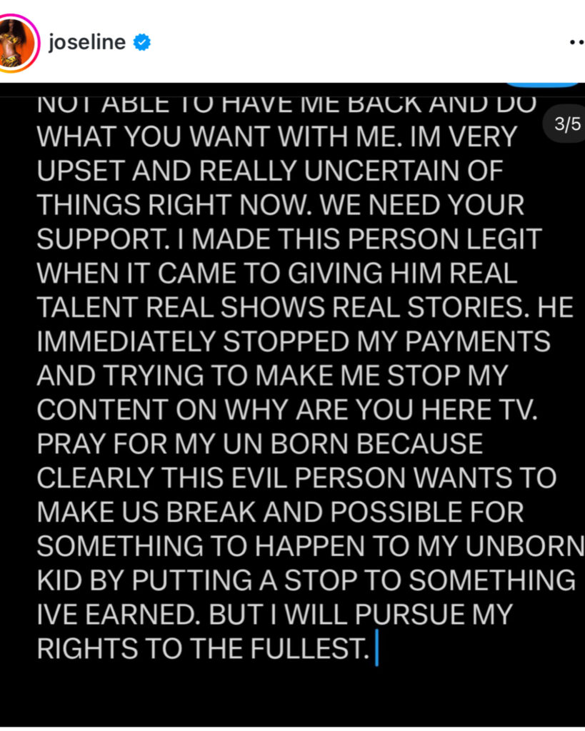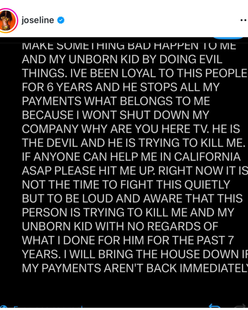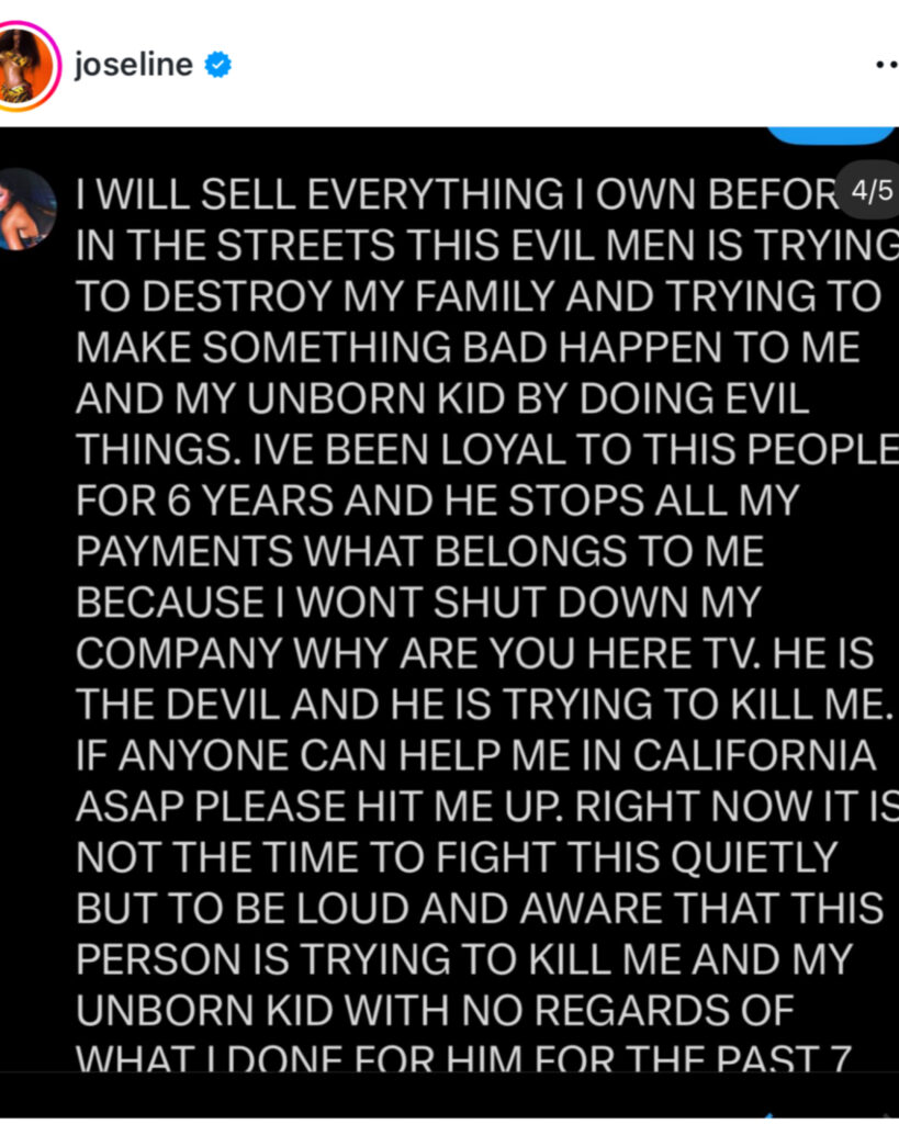 Joseline didn’t hold back, accusing Plummer of putting her and her unborn child in danger by allegedly cutting off payments she says were owed to her from Joseline’s Cabaret. According to her, the financial issues escalated to the point where she had to seek medical attention.